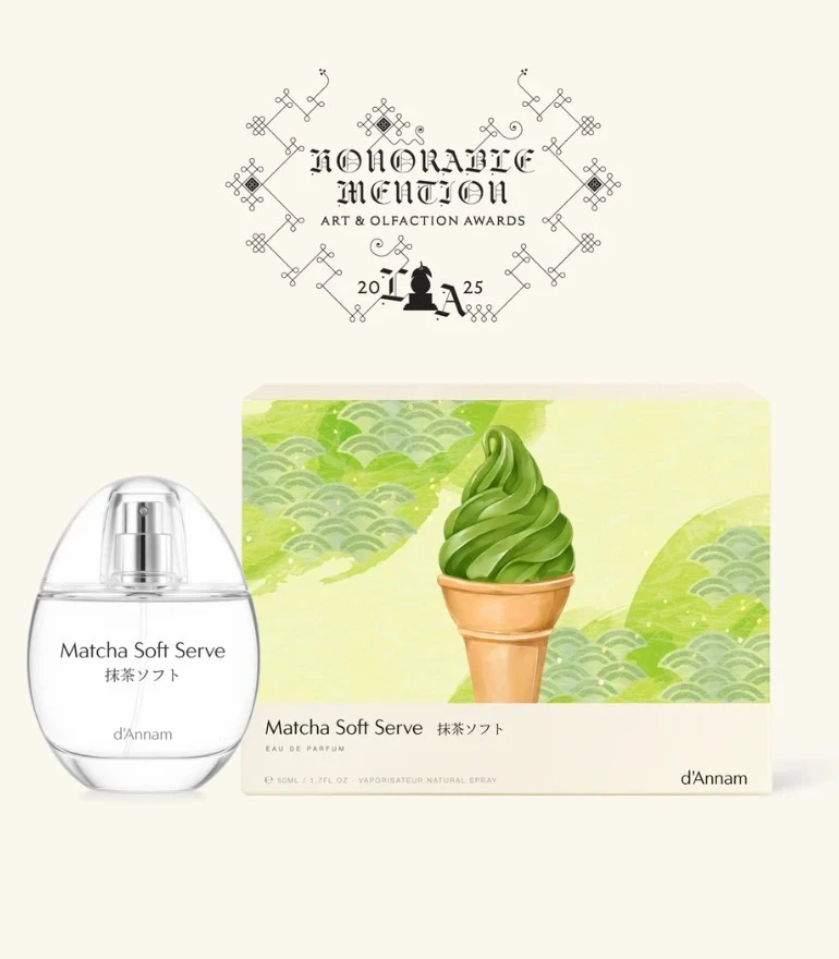 d'Annam Matcha Soft Serve to gourmand w stylu „quiet luxury” - nie cukierniczy i ciężki, lecz kremowy, zielony i zaskakująco elegancki. To zapach, który gra kontrastem: świeżo parzona matcha ma tu swoją wytrawną, lekko gorzką głębię, ale od pierwszych minut zostaje wygładzona mleczną miękkością, jak deser z lodziarni w upalny dzień.